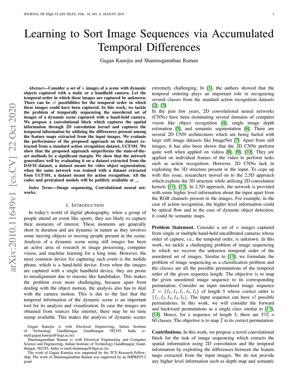 Learning to Sort Image Sequences via Accumulated Temporal Differences