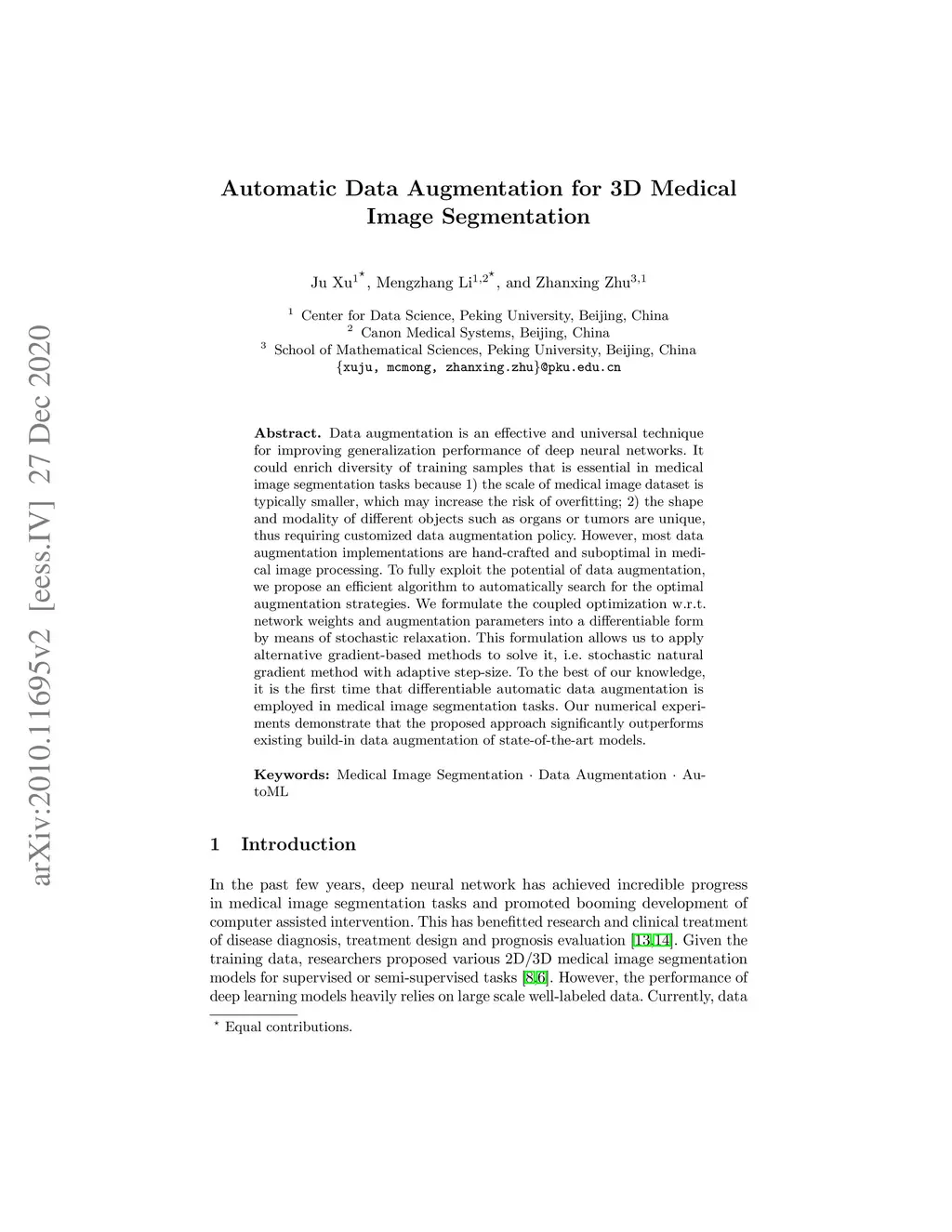 Automatic Data Augmentation for 3D Medical Image Segmentation