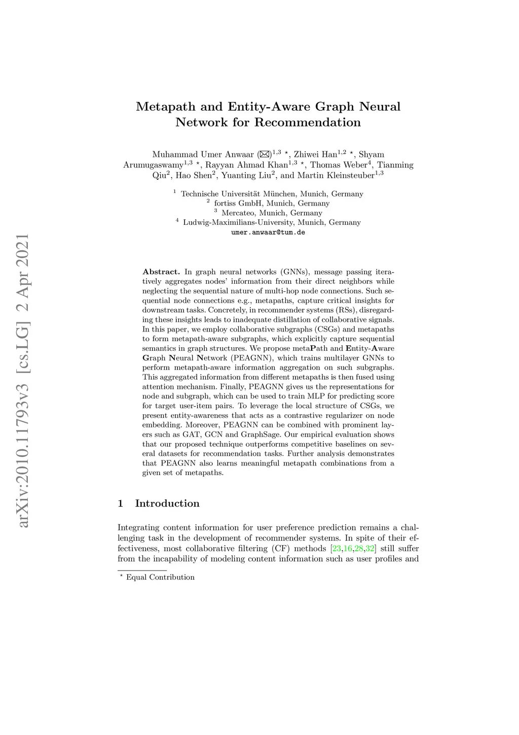 Metapath- and Entity-aware Graph Neural Network for Recommendation