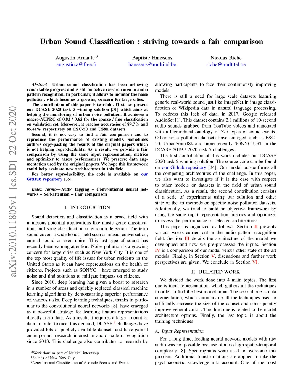 Urban sound classification has been achieving remarkable progress and is still an active research area in audio pattern recognition. In particular, it allows to monitor the noise pollution, which becomes a growing concern for large cities. The contribution of this paper is two-fold. First, we present our DCASE 2020 task 5 winning solution which aims at helping the monitoring of urban noise pollution. It achieves a macro-AUPRC of 0.82 / 0.62 for the coarse / fine classification on validation set. Moreover, it reaches accuracies of 89.7% and 85.41% respectively on ESC-50 and US8k datasets. Second, it is not easy to find a fair comparison and to reproduce the performance of existing models. Sometimes authors copy-pasting the results of the original papers which is not helping reproducibility. As a result, we provide a fair comparison by using the same input representation, metrics and optimizer to assess performances. We preserve data augmentation used by the original papers. We hope this framework could help evaluate new architectures in this field. For better reproducibility, the code is available on our GitHub repository.