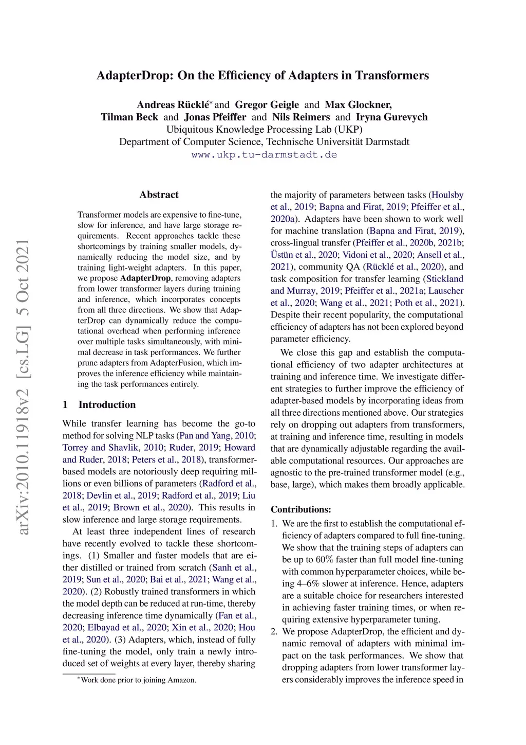 AdapterDrop: On the Efficiency of Adapters in Transformers
