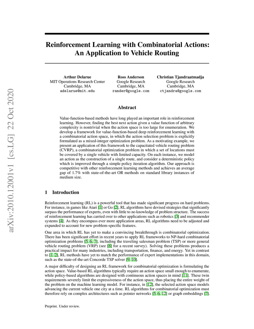 Reinforcement Learning with Combinatorial Actions: An Application to