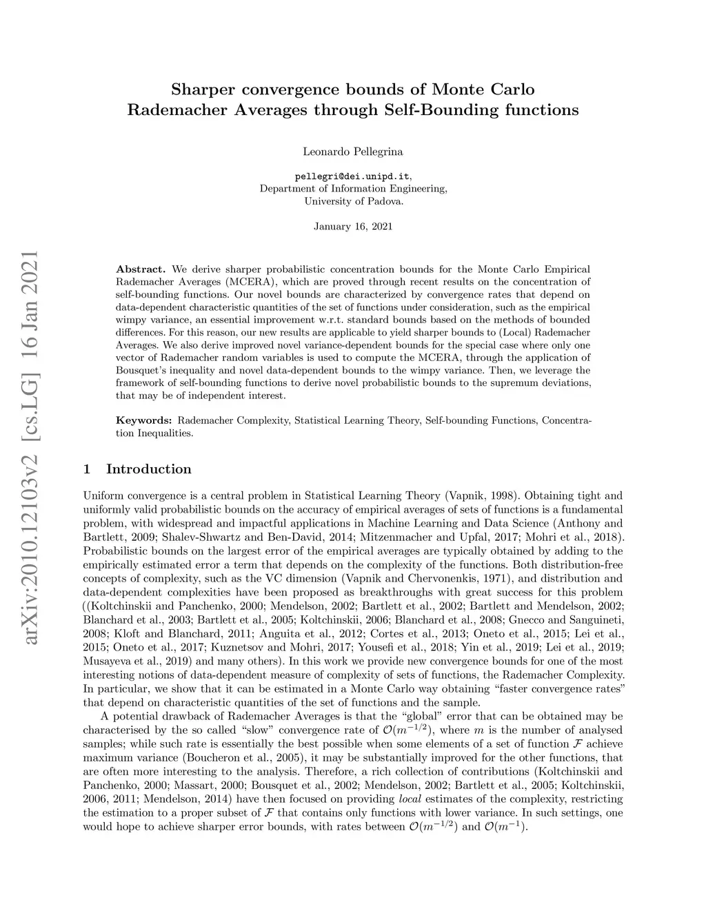 Sharper convergence bounds of Monte Carlo Rademacher Averages through