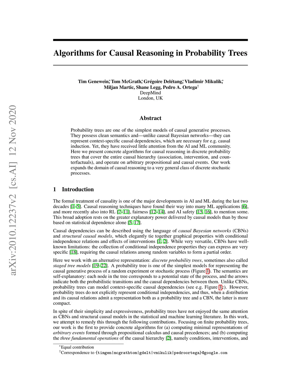 Probability trees are one of the simplest models of causal generative processes. They possess clean semantics and -- unlike causal Bayesian networks -- they can represent context-specific causal dependencies, which are necessary for e.g. causal induction. Yet, they have received little attention from the AI and ML community. Here we present concrete algorithms for causal reasoning in discrete probability trees that cover the entire causal hierarchy (association, intervention, and counterfactuals), and operate on arbitrary propositional and causal events. Our work expands the domain of causal reasoning to a very general class of discrete stochastic processes.