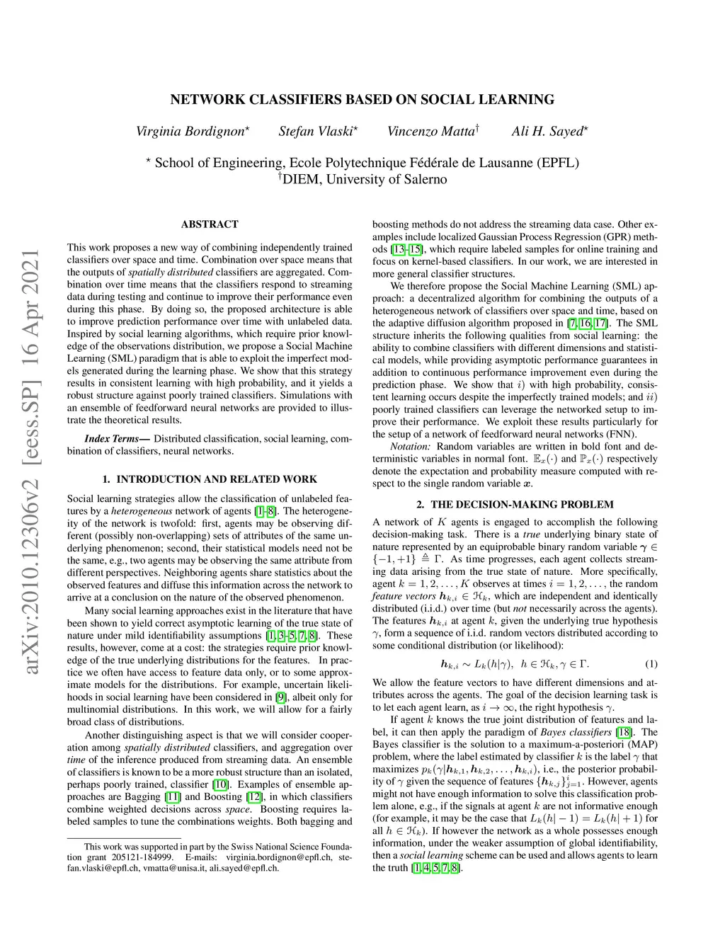 This work proposes a new way of combining independently trained classifiers over space and time. Combination over space means that the outputs of spatially distributed classifiers are aggregated. Combination over time means that the classifiers respond to streaming data during testing and continue to improve their performance even during this phase. By doing so, the proposed architecture is able to improve prediction performance over time with unlabeled data. Inspired by social learning algorithms, which require prior knowledge of the observations distribution, we propose a Social Machine Learning (SML) paradigm that is able to exploit the imperfect models generated during the learning phase. We show that this strategy results in consistent learning with high probability, and it yields a robust structure against poorly trained classifiers. Simulations with an ensemble of feedforward neural networks are provided to illustrate the theoretical results.