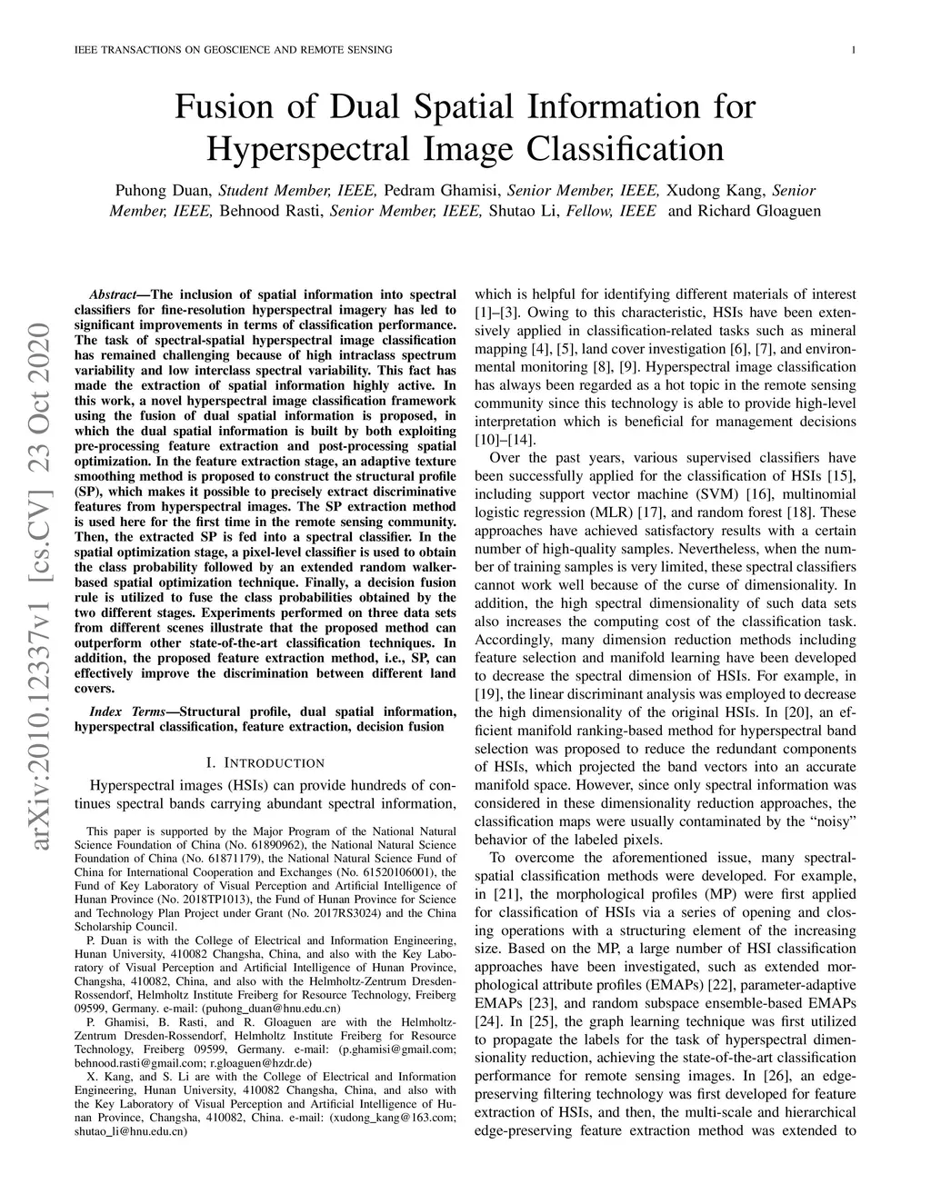 Fusion of Dual Spatial Information for Hyperspectral Image