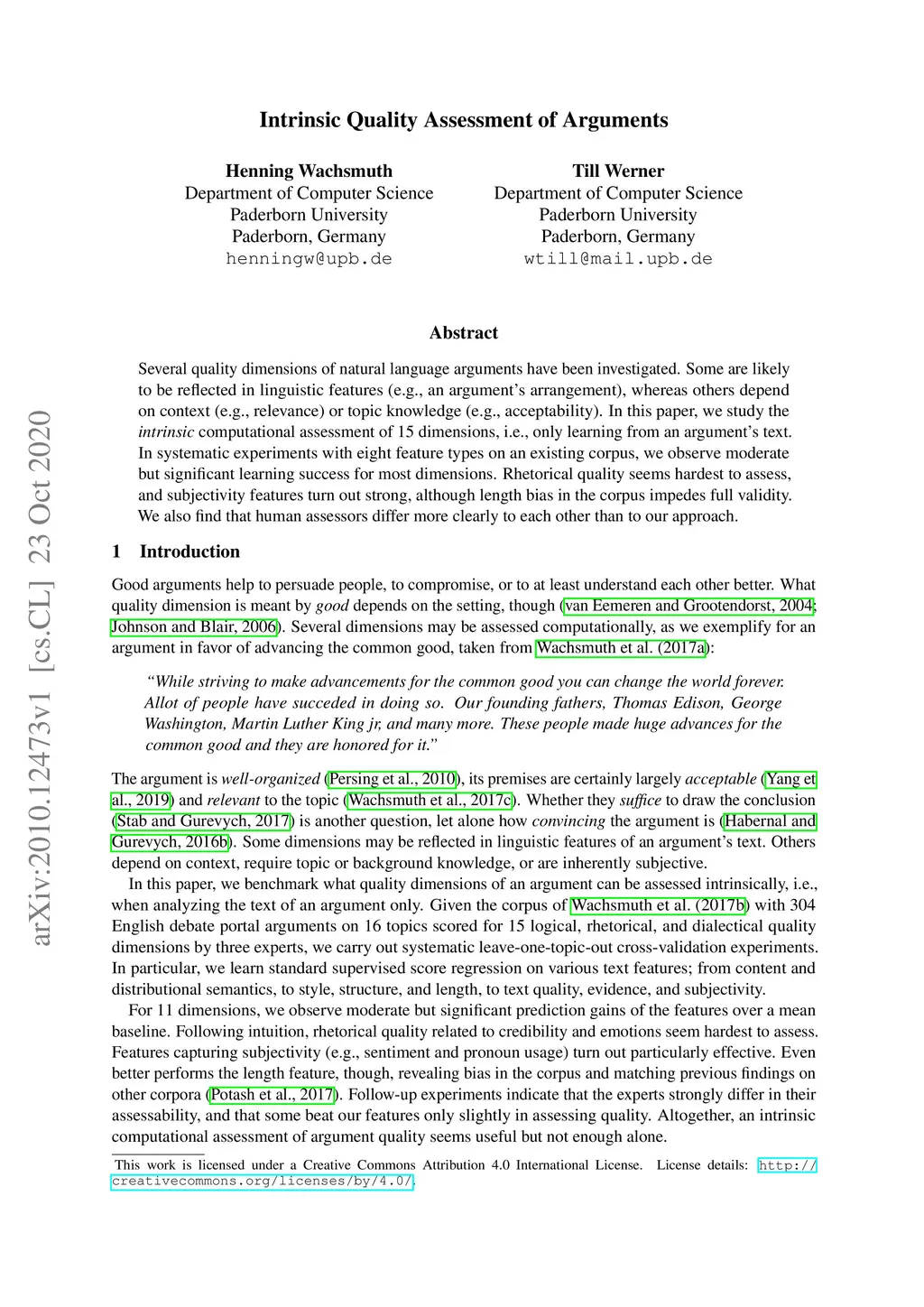Intrinsic Quality Assessment of Arguments