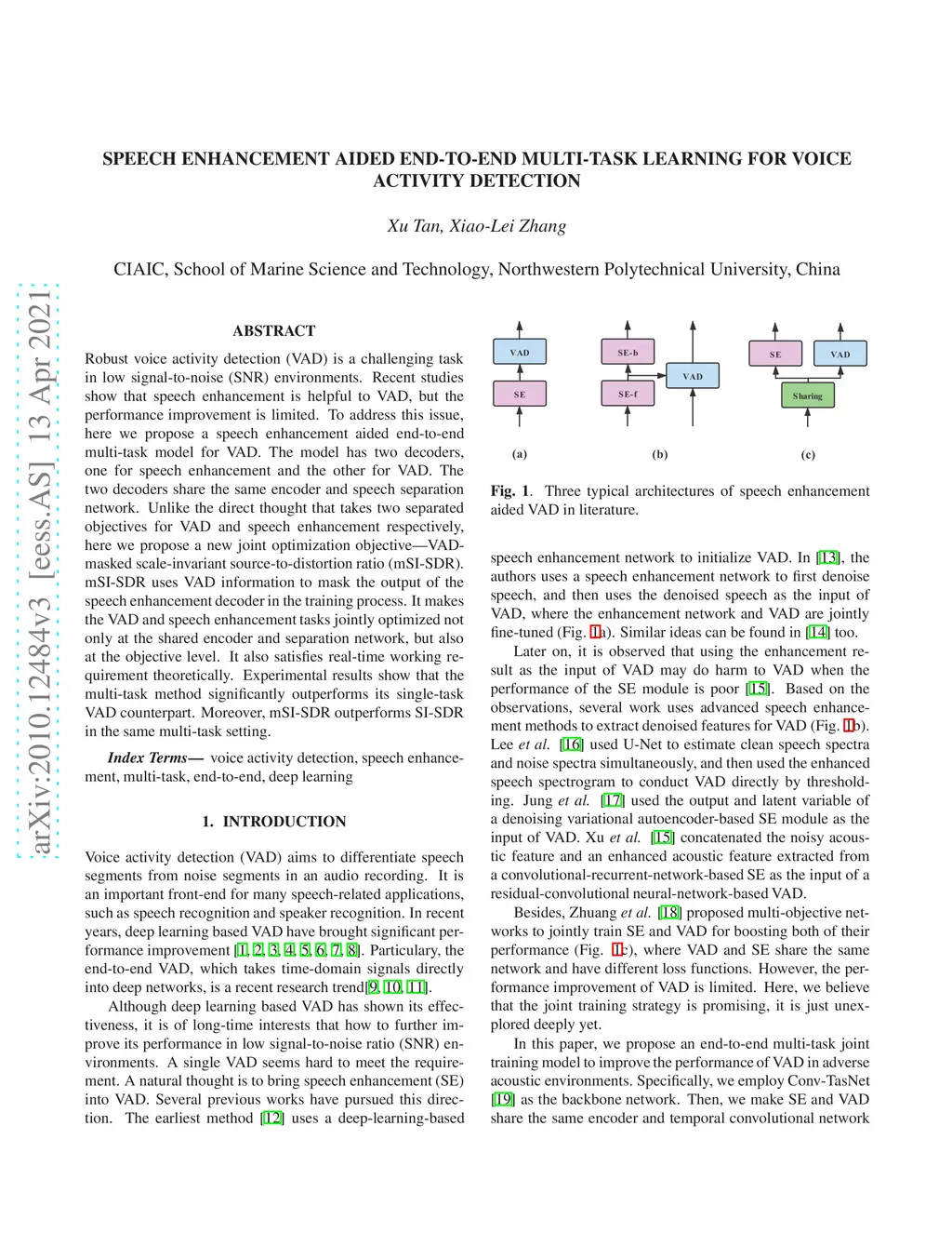 Robust voice activity detection (VAD) is a challenging task in low signal-to-noise (SNR) environments. Recent studies show that speech enhancement is helpful to VAD, but the performance improvement is limited. To address this issue, here we propose a speech enhancement aided end-to-end multi-task model for VAD. The model has two decoders, one for speech enhancement and the other for VAD. The two decoders share the same encoder and speech separation network. Unlike the direct thought that takes two separated objectives for VAD and speech enhancement respectively, here we propose a new joint optimization objective -- VAD-masked scale-invariant source-to-distortion ratio (mSI-SDR). mSI-SDR uses VAD information to mask the output of the speech enhancement decoder in the training process. It makes the VAD and speech enhancement tasks jointly optimized not only at the shared encoder and separation network, but also at the objective level. It also satisfies real-time working requirement theoretically. Experimental results show that the multi-task method significantly outperforms its single-task VAD counterpart. Moreover, mSI-SDR outperforms SI-SDR in the same multi-task setting.