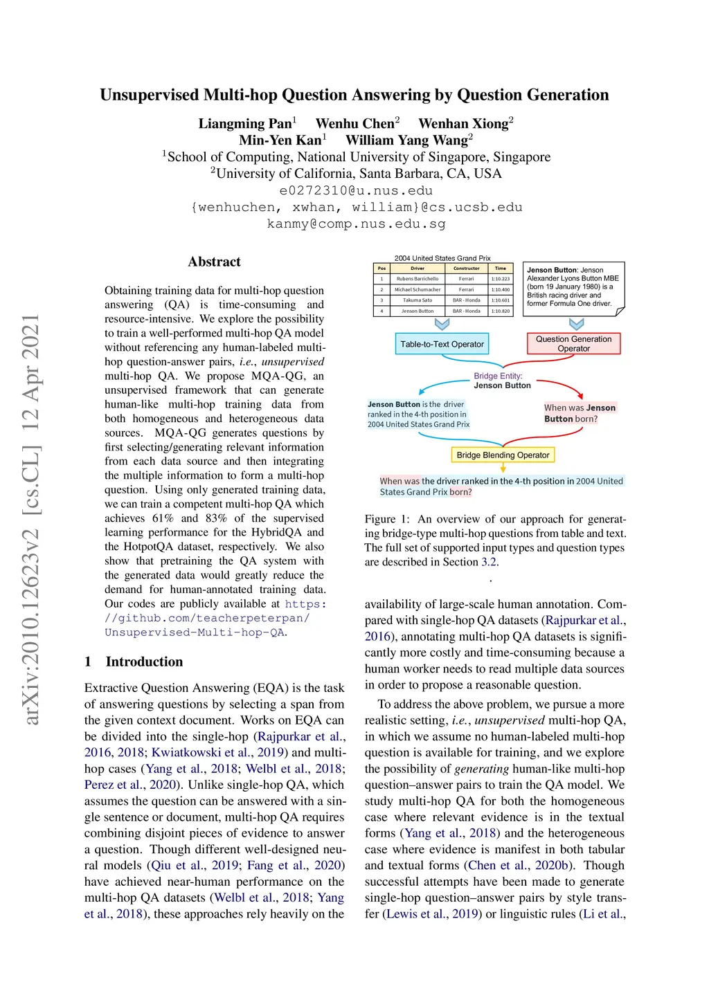 Unsupervised Multi-hop Question Answering by Question Generation