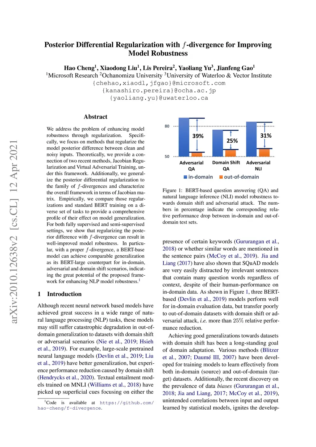 Posterior Differential Regularization with f-divergence for Improving Model Robustness