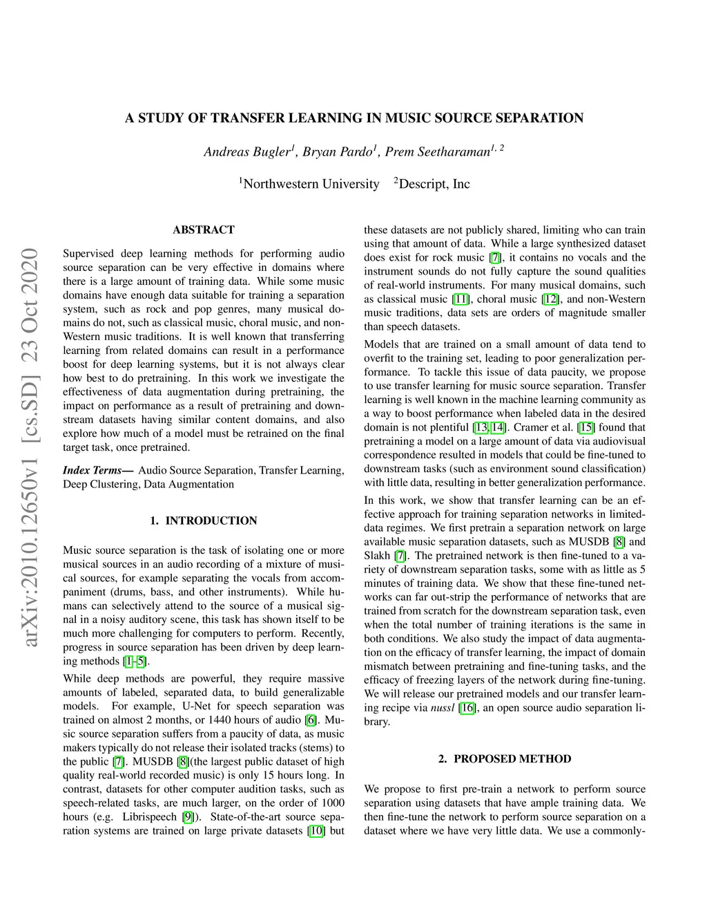 Supervised deep learning methods for performing audio source separation can be very effective in domains where there is a large amount of training data. While some music domains have enough data suitable for training a separation system, such as rock and pop genres, many musical domains do not, such as classical music, choral music, and non-Western music traditions. It is well known that transferring learning from related domains can result in a performance boost for deep learning systems, but it is not always clear how best to do pretraining. In this work we investigate the effectiveness of data augmentation during pretraining, the impact on performance as a result of pretraining and downstream datasets having similar content domains, and also explore how much of a model must be retrained on the final target task, once pretrained.