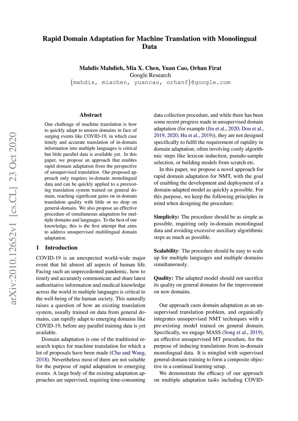 Rapid Domain Adaptation for Machine Translation with Monolingual Data