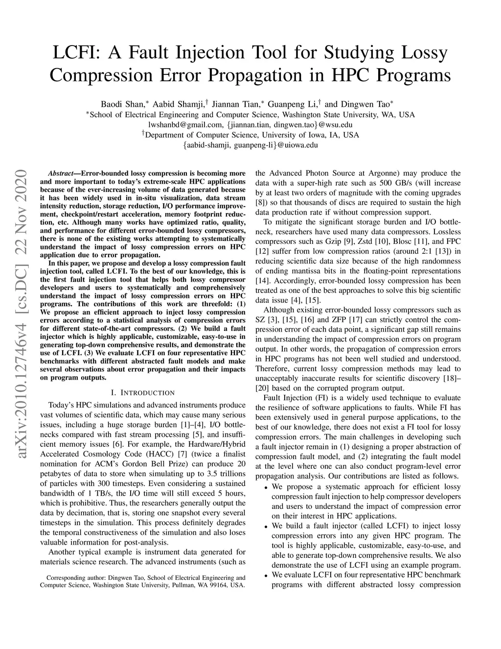 LCFI: A Fault Injection Tool for Studying Lossy Compression Error