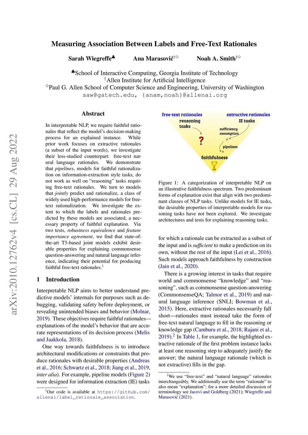 Measuring Association Between Labels and Free-Text Rationales