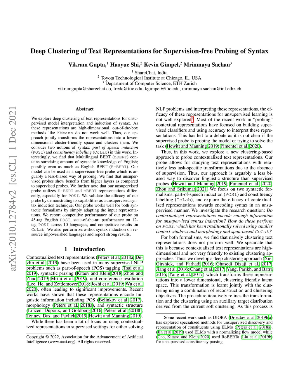 Deep Clustering of Text Representations for Supervision-free Probing of