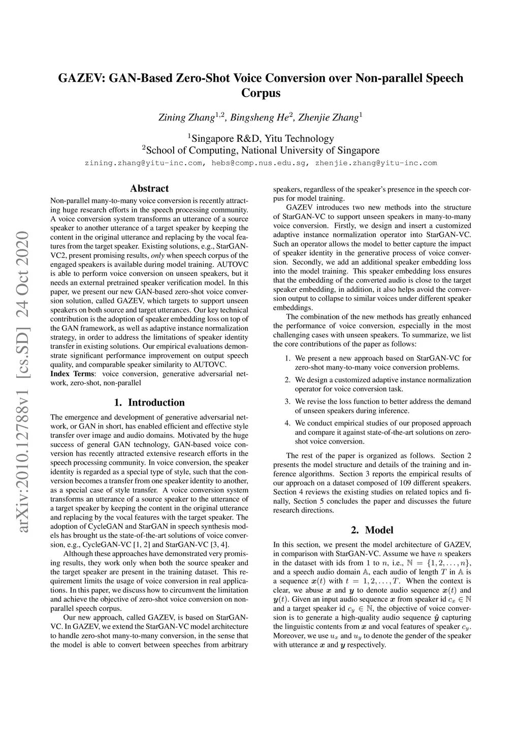 GAZEV: GAN-Based Zero-Shot Voice Conversion over Non-parallel Speech