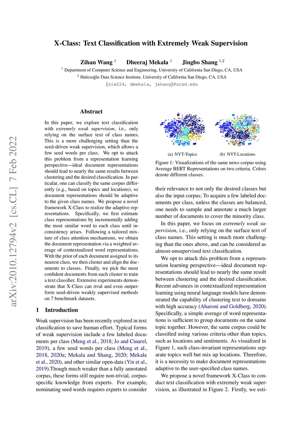 X-Class: Text Classification with Extremely Weak Supervision
