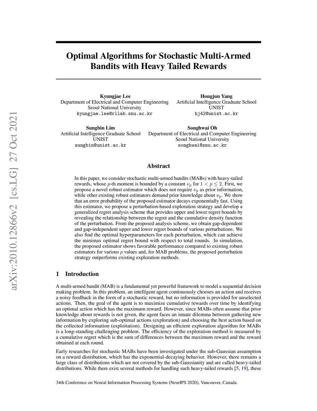 Optimal Algorithms for Stochastic Multi-Armed Bandits with Heavy Tailed