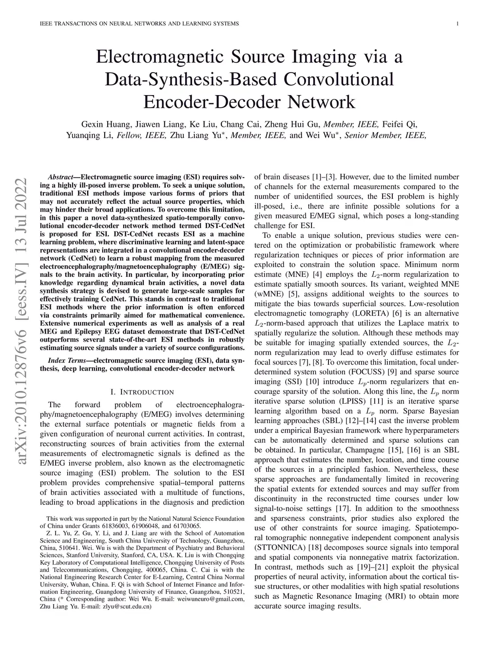 Electromagnetic Source Imaging via a Data-Synthesis-Based Convolutional
