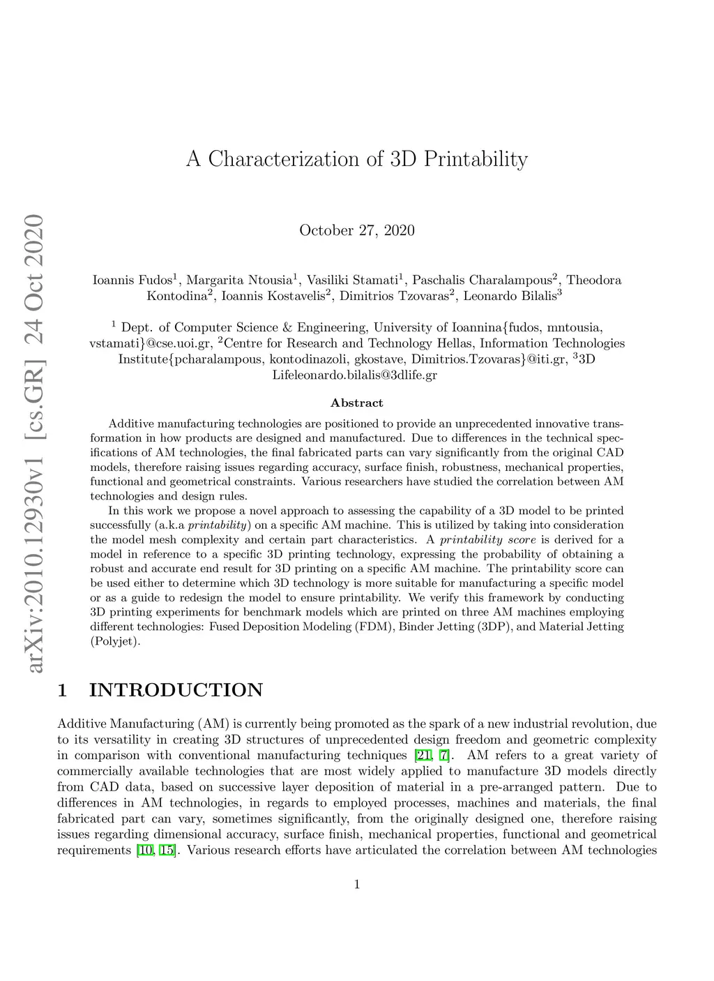 A Characterization of 3D Printability