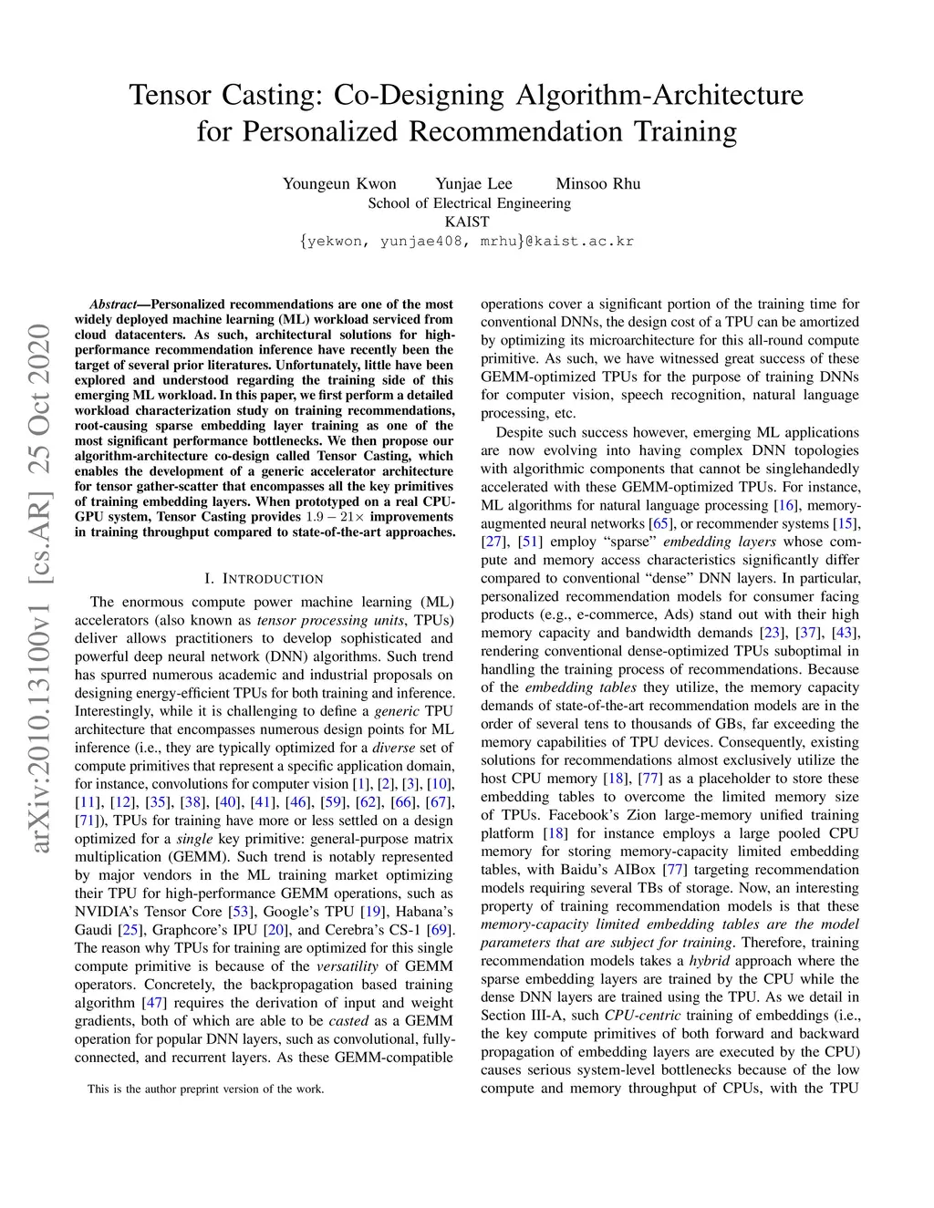Tensor Casting: Co-Designing Algorithm-Architecture for Personalized