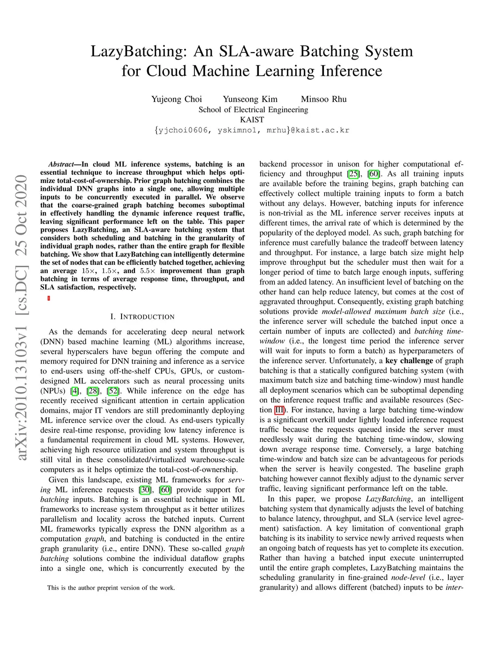 LazyBatching: An SLA-aware Batching System for Cloud Machine Learning
