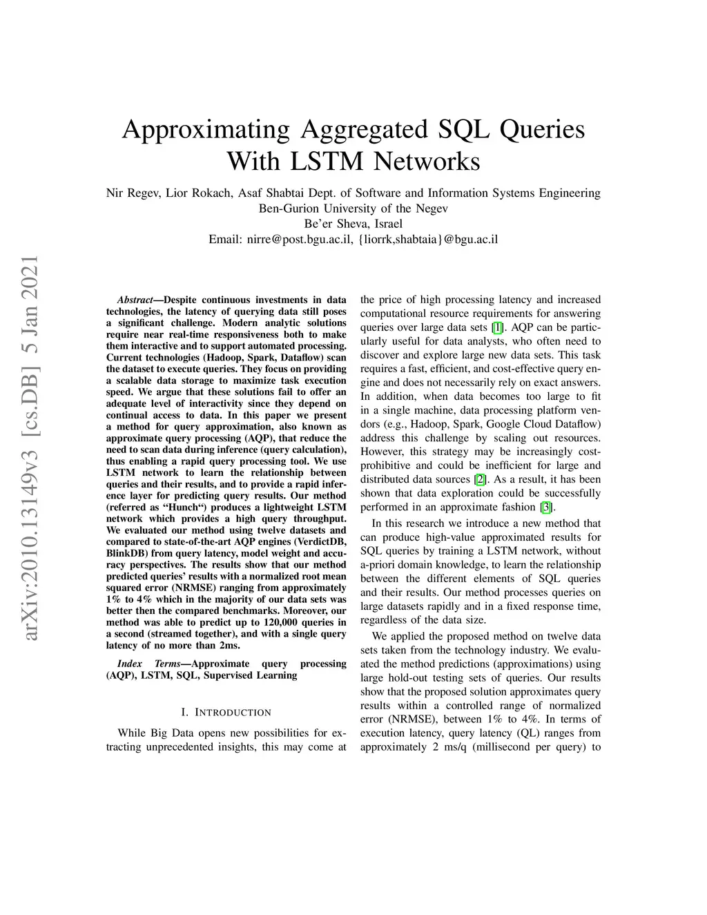 Approximating Aggregated SQL Queries With LSTM Networks