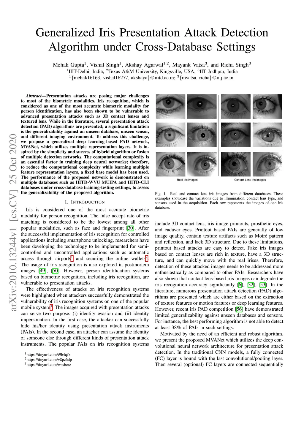 Presentation attacks are posing major challenges to most of the biometric modalities. Iris recognition, which is considered as one of the most accurate biometric modality for person identification, has also been shown to be vulnerable to advanced presentation attacks such as 3D contact lenses and textured lens. While in the literature, several presentation attack detection (PAD) algorithms are presented; a significant limitation is the generalizability against an unseen database, unseen sensor, and different imaging environment. To address this challenge, we propose a generalized deep learning-based PAD network, MVANet, which utilizes multiple representation layers. It is inspired by the simplicity and success of hybrid algorithm or fusion of multiple detection networks. The computational complexity is an essential factor in training deep neural networks; therefore, to reduce the computational complexity while learning multiple feature representation layers, a fixed base model has been used. The performance of the proposed network is demonstrated on multiple databases such as IIITD-WVU MUIPA and IIITD-CLI databases under cross-database training-testing settings, to assess the generalizability of the proposed algorithm.