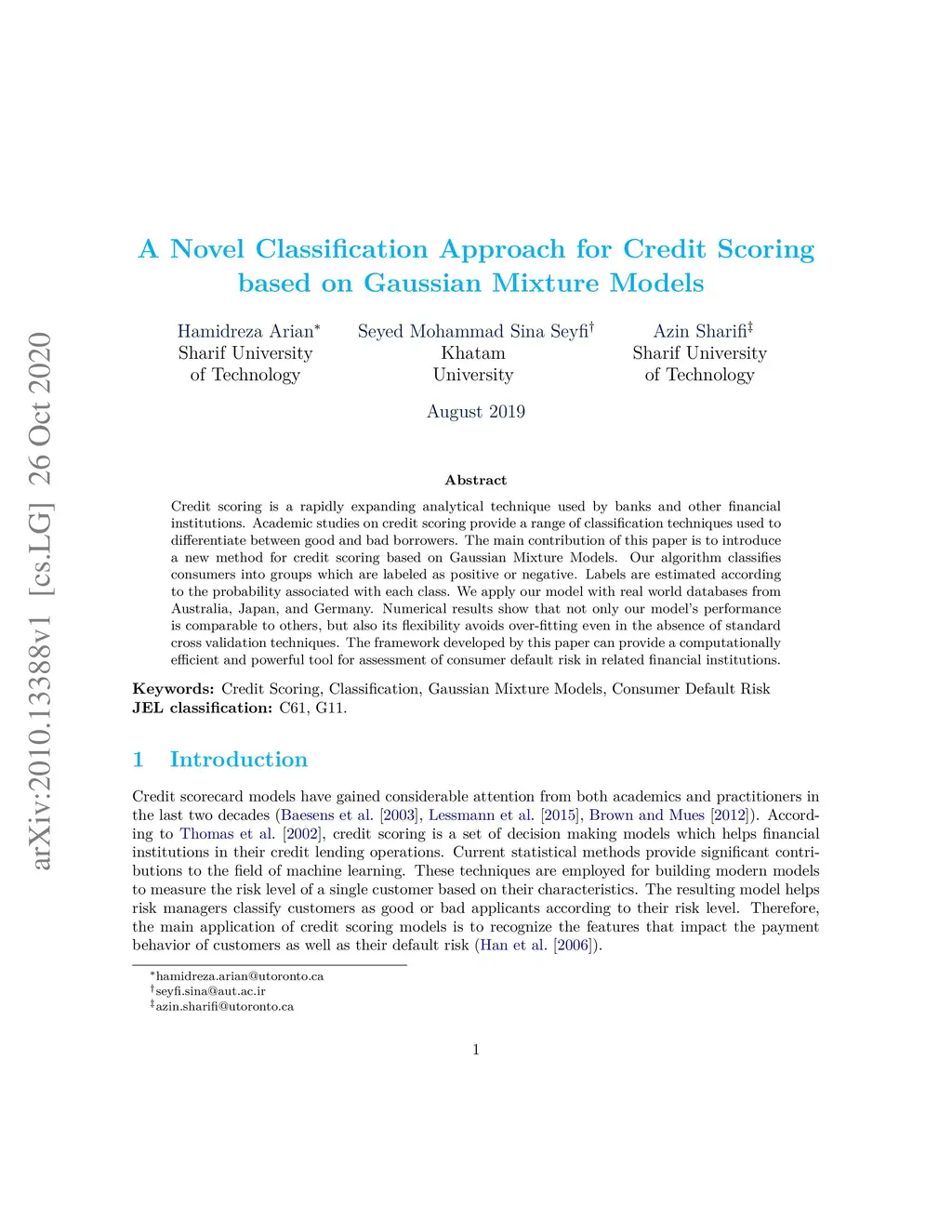 A Novel Classification Approach for Credit Scoring based on Gaussian