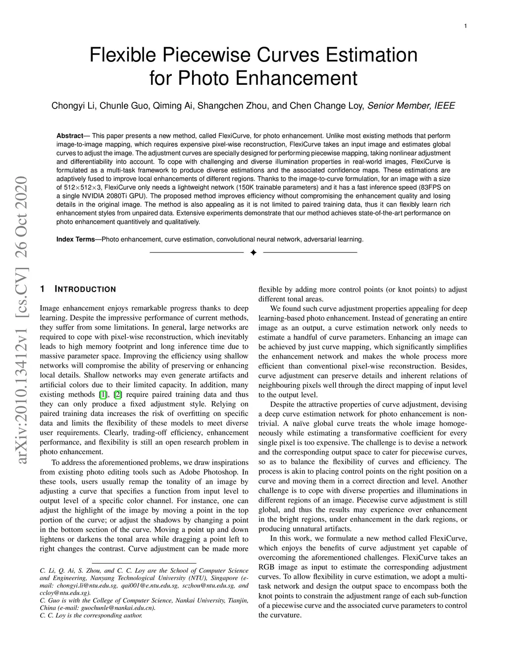 Flexible Piecewise Curves Estimation for Photo Enhancement