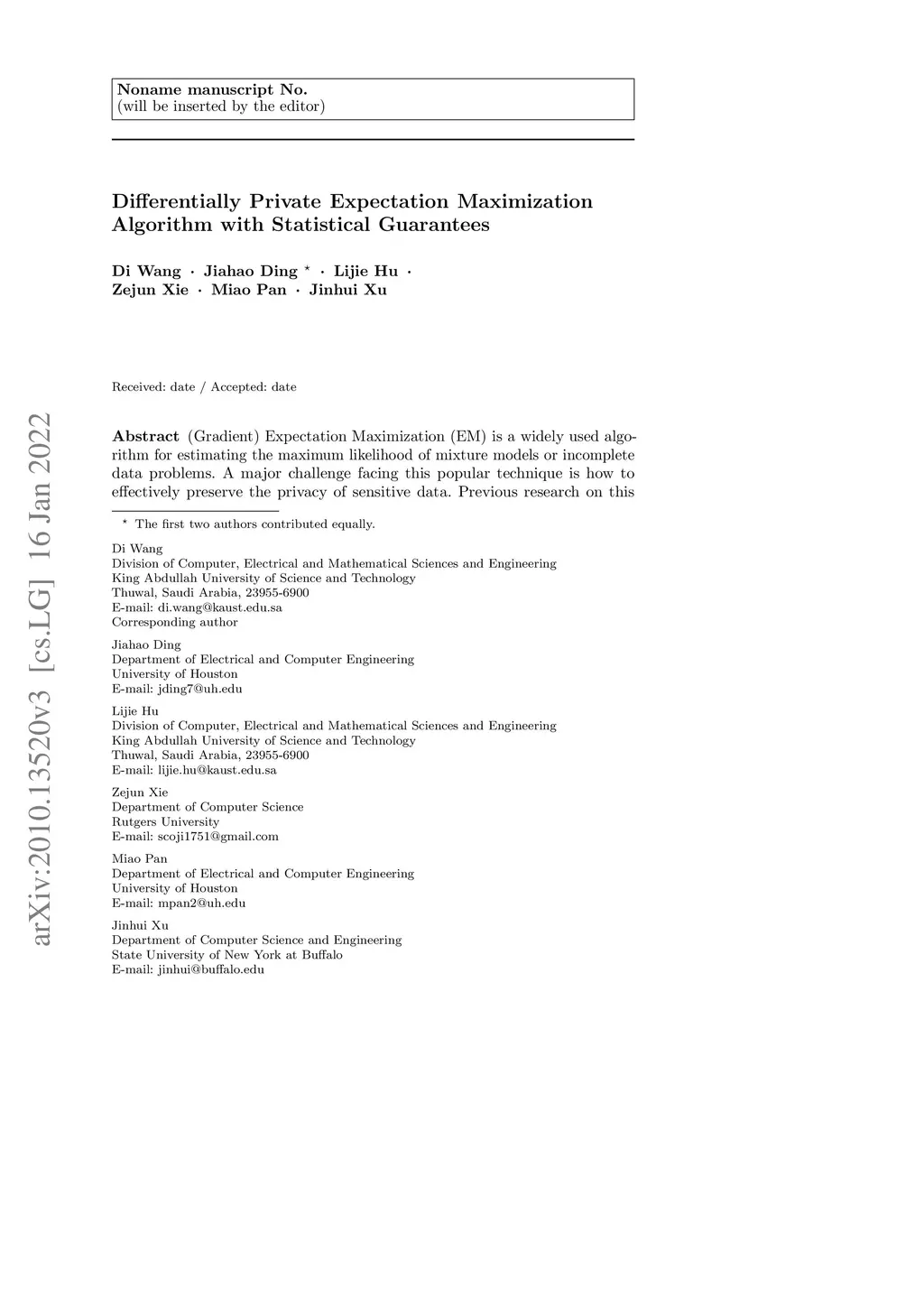 (Gradient) Expectation Maximization (EM) is a widely used algorithm for estimating the maximum likelihood of mixture models or incomplete data problems. A major challenge facing this popular technique is how to effectively preserve the privacy of sensitive data. Previous research on this problem has already lead to the discovery of some Differentially Private (DP) algorithms for (Gradient) EM. However, unlike in the non-private case, existing techniques are not yet able to provide finite sample statistical guarantees. To address this issue, we propose in this paper the first DP version of (Gradient) EM algorithm with statistical guarantees. Moreover, we apply our general framework to three canonical models: Gaussian Mixture Model (GMM), Mixture of Regressions Model (MRM) and Linear Regression with Missing Covariates (RMC). Specifically, for GMM in the DP model, our estimation error is near optimal in some cases. For the other two models, we provide the first finite sample statistical guarantees. Our theory is supported by thorough numerical experiments.