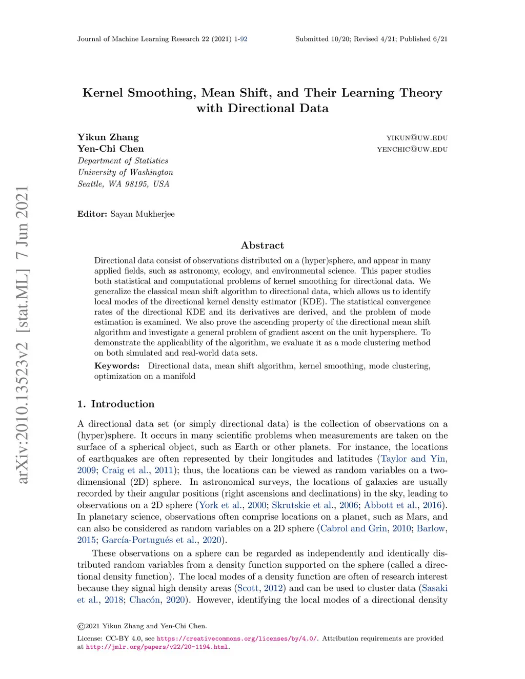 Kernel Smoothing, Mean Shift, and Their Learning Theory with Directional