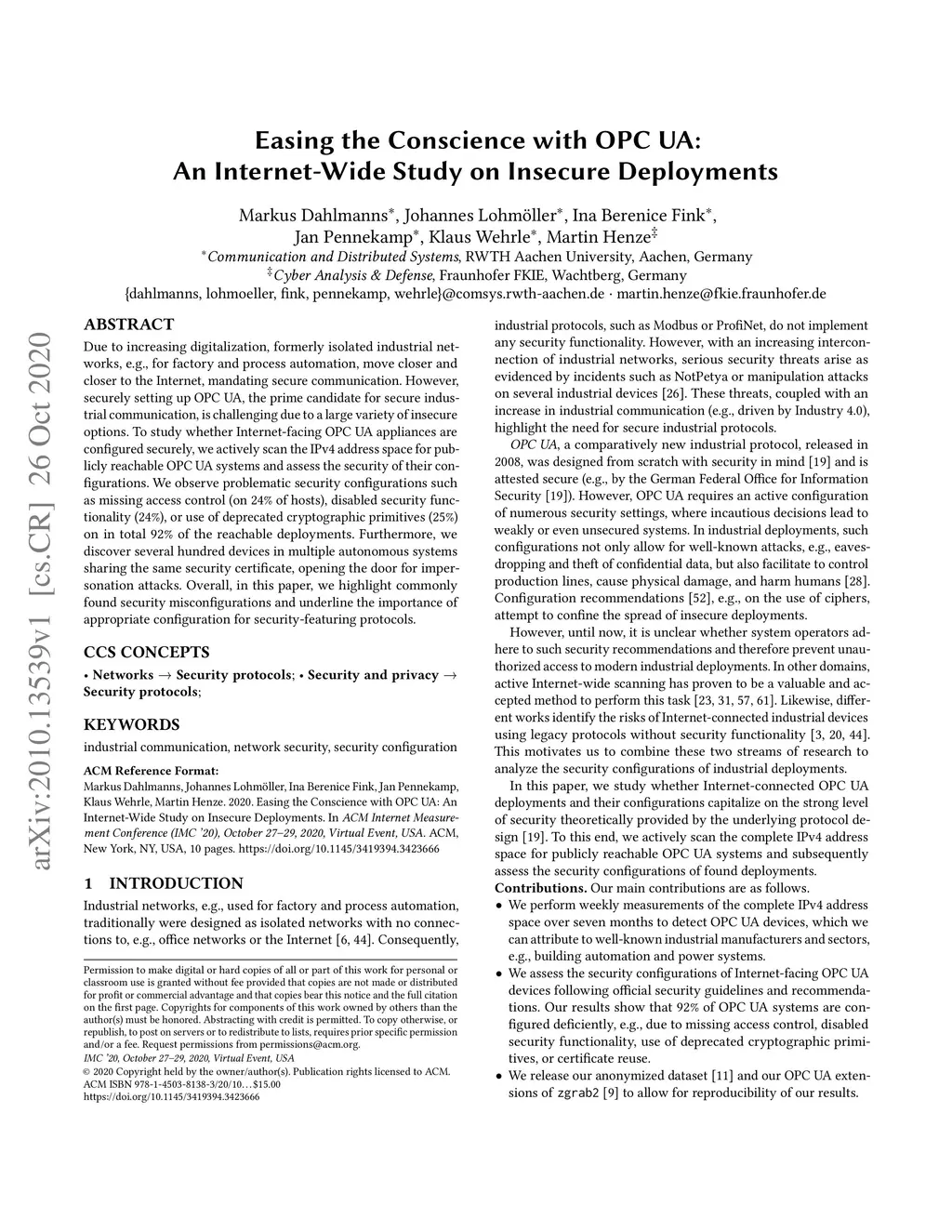 Easing the Conscience with OPC UA: An Internet-Wide Study on Insecure