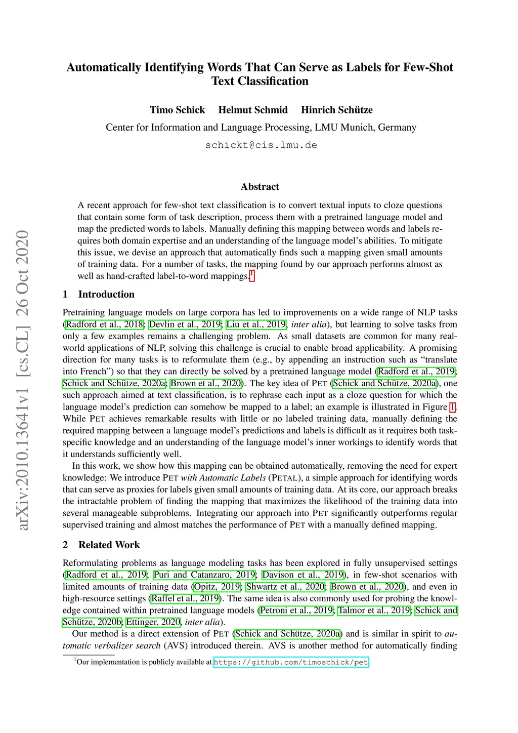 Automatically Identifying Words That Can Serve as Labels for Few-Shot