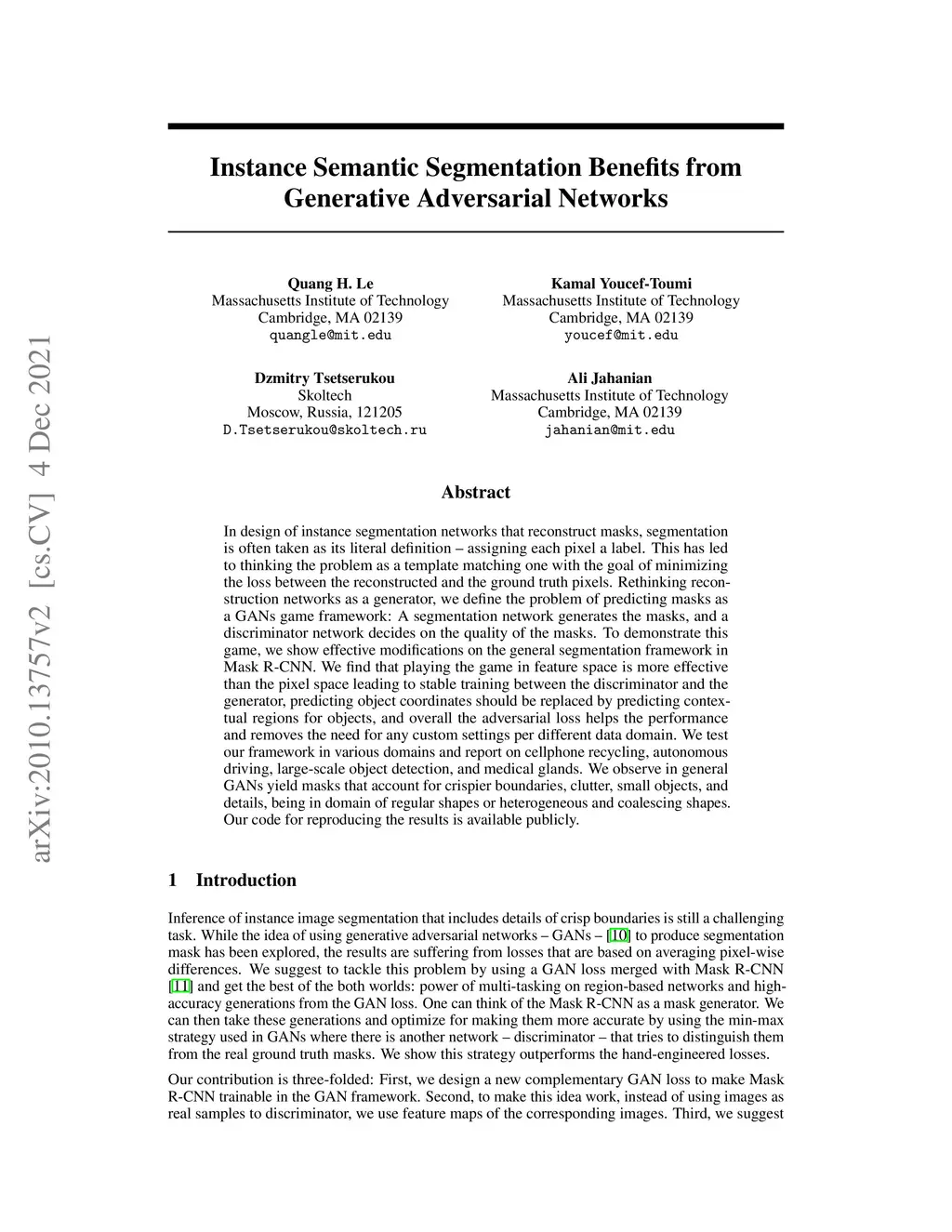 GAN Mask R-CNN:Instance semantic segmentation benefits from