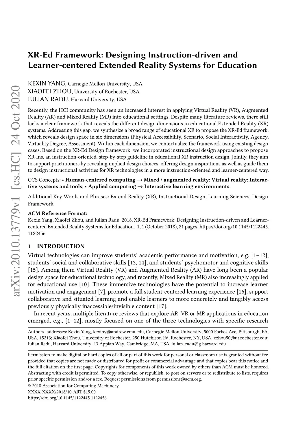 XR-Ed Framework: Designing Instruction-driven andLearner-centered
