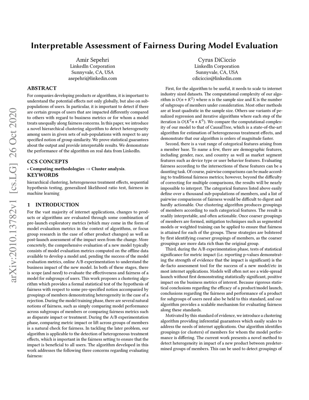 For companies developing products or algorithms, it is important to understand the potential effects not only globally, but also on sub-populations of users. In particular, it is important to detect if there are certain groups of users that are impacted differently compared to others with regard to business metrics or for whom a model treats unequally along fairness concerns. In this paper, we introduce a novel hierarchical clustering algorithm to detect heterogeneity among users in given sets of sub-populations with respect to any specified notion of group similarity. We prove statistical guarantees about the output and provide interpretable results. We demonstrate the performance of the algorithm on real data from LinkedIn.