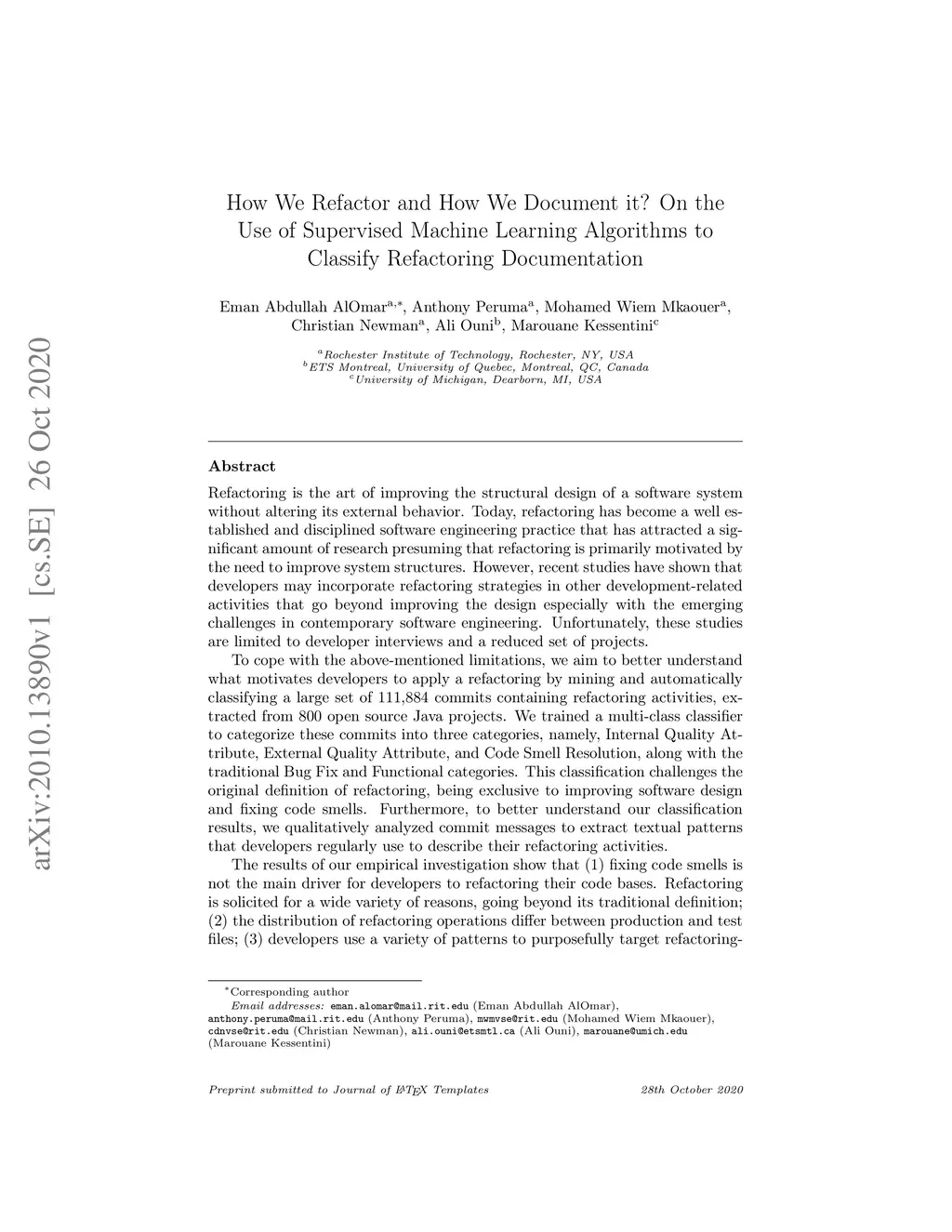 How We Refactor and How We Document it? On the Use of Supervised Machine