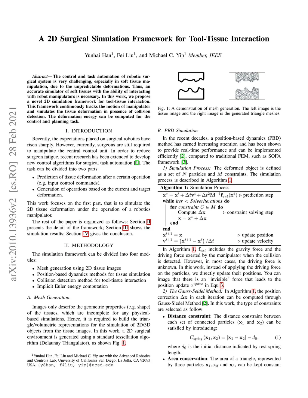 A 2D Surgical Simulation Framework for Tool-Tissue Interaction