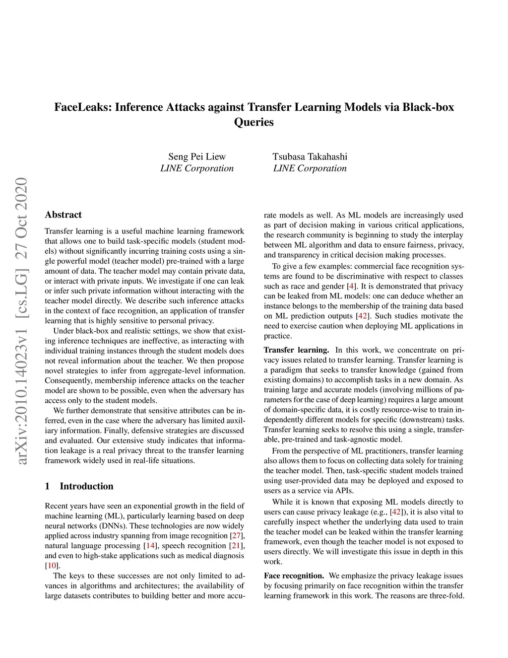 FaceLeaks: Inference Attacks against Transfer Learning Models via