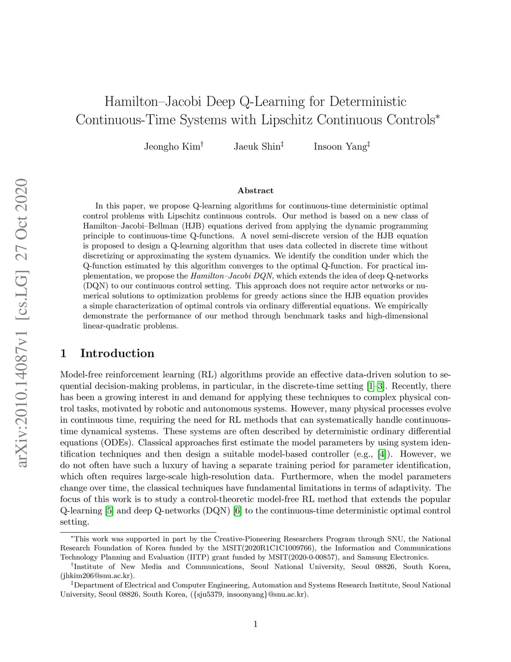Hamilton-Jacobi Deep Q-Learning for Deterministic Continuous-Time