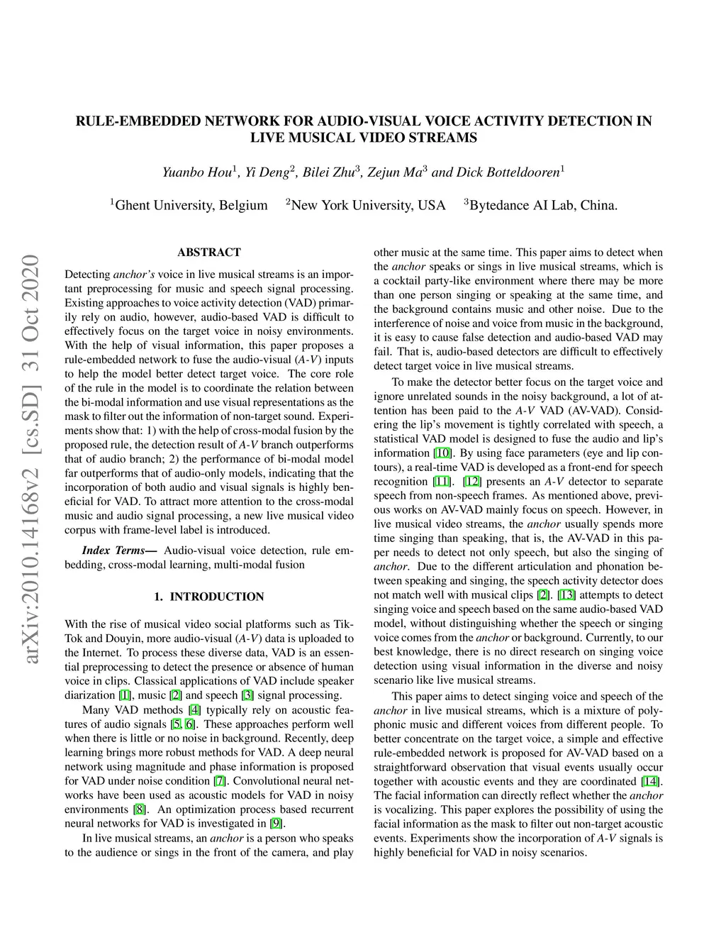 Rule-embedded network for audio-visual voice activity detection in live
