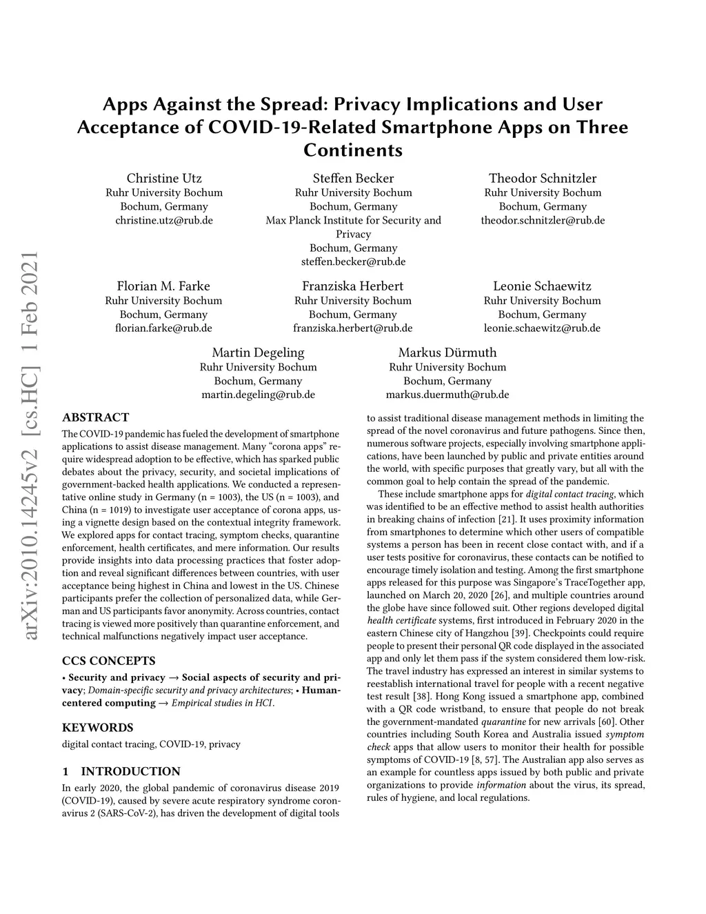 Apps Against the Spread: Privacy Implications and User Acceptance of