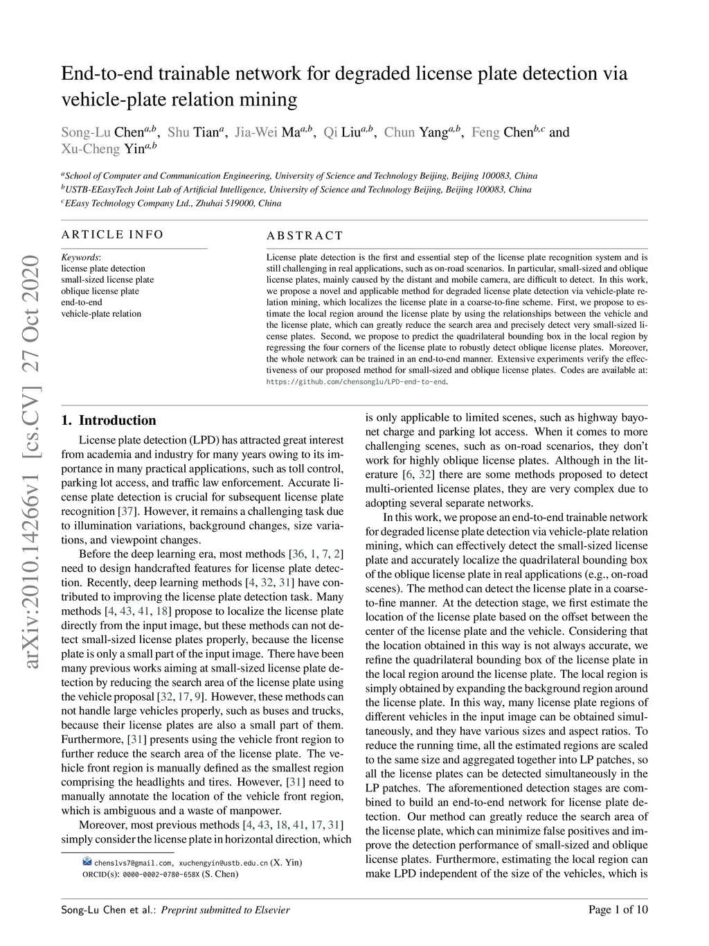End-to-end trainable network for degraded license plate detection via