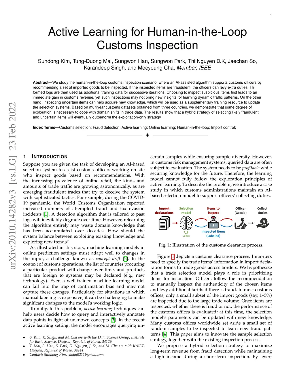 We study the human-in-the-loop customs inspection scenario, where an AI-assisted algorithm supports customs officers by recommending a set of imported goods to be inspected. If the inspected items are fraudulent, the officers can levy extra duties. Th formed logs are then used as additional training data for successive iterations. Choosing to inspect suspicious items first leads to an immediate gain in customs revenue, yet such inspections may not bring new insights for learning dynamic traffic patterns. On the other hand, inspecting uncertain items can help acquire new knowledge, which will be used as a supplementary training resource to update the selection systems. Based on multiyear customs datasets obtained from three countries, we demonstrate that some degree of exploration is necessary to cope with domain shifts in trade data. The results show that a hybrid strategy of selecting likely fraudulent and uncertain items will eventually outperform the exploitation-only strategy.