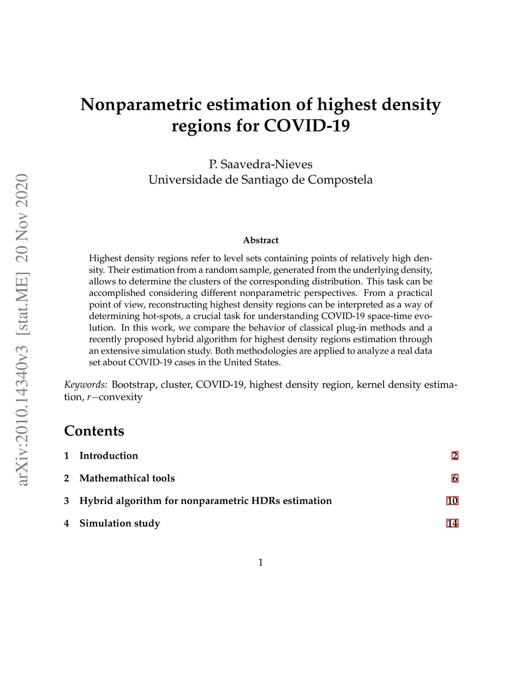 Highest density regions refer to level sets containing points of relatively high density. Their estimation from a random sample, generated from the underlying density, allows to determine the clusters of the corresponding distribution. This task can be accomplished considering different nonparametric perspectives. From a practical point of view, reconstructing highest density regions can be interpreted as a way of determining hot-spots, a crucial task for understanding COVID-19 space-time evolution. In this work, we compare the behavior of classical plug-in methods and a recently proposed hybrid algorithm for highest density regions estimation through an extensive simulation study. Both methodologies are applied to analyze a real data set about COVID-19 cases in the United States.