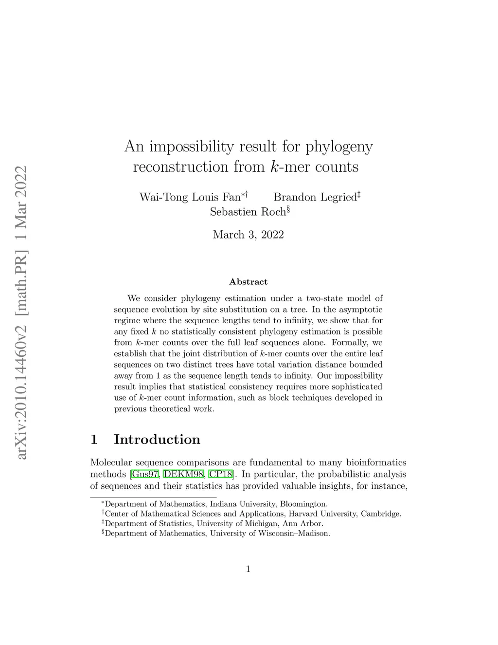 Impossibility of phylogeny reconstruction from -mer counts