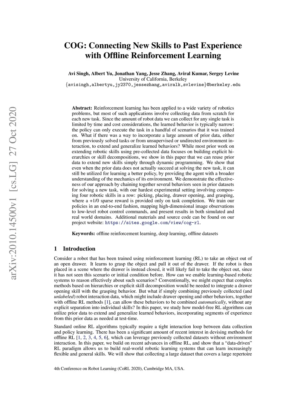 COG: Connecting New Skills to Past Experience with Offline Reinforcement