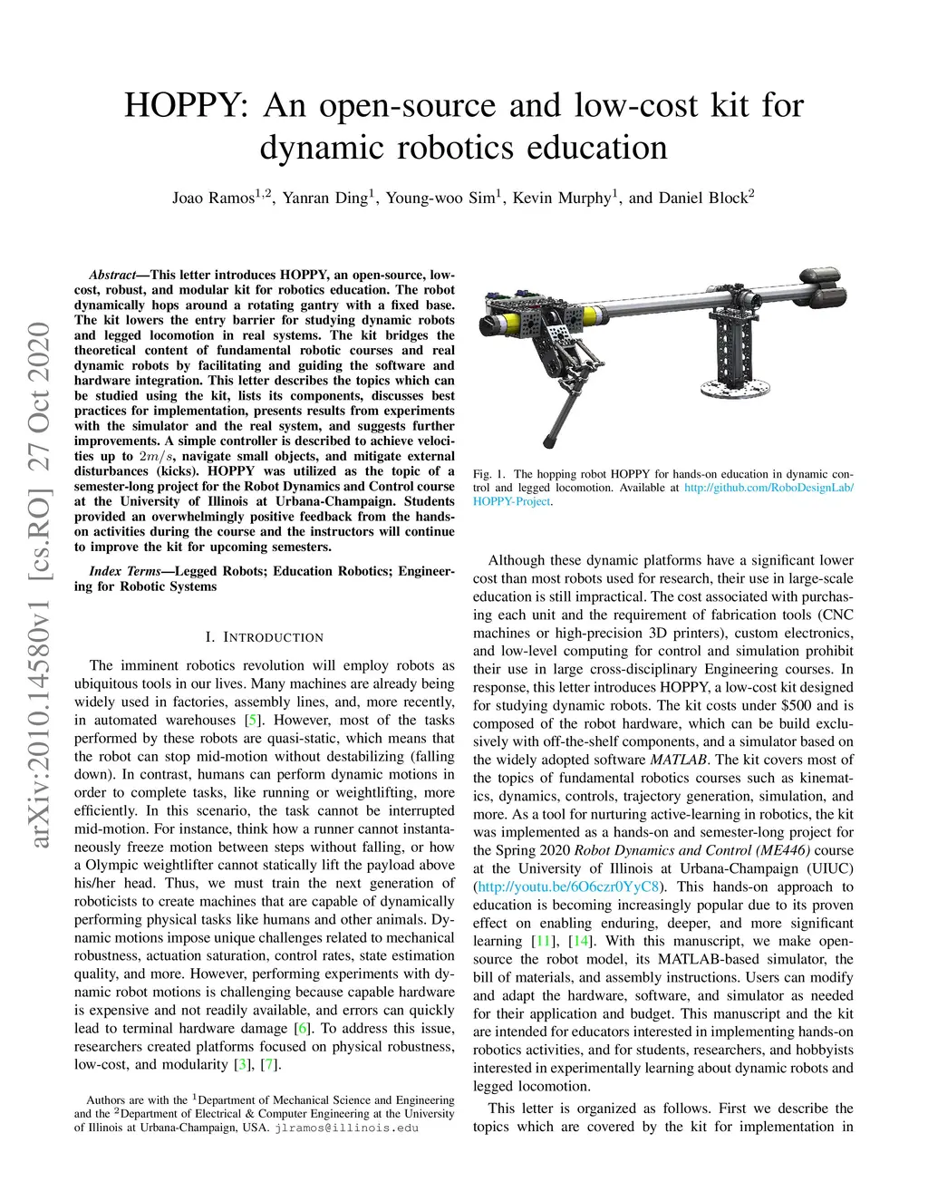 HOPPY: An open-source and low-cost kit for dynamic robotics education