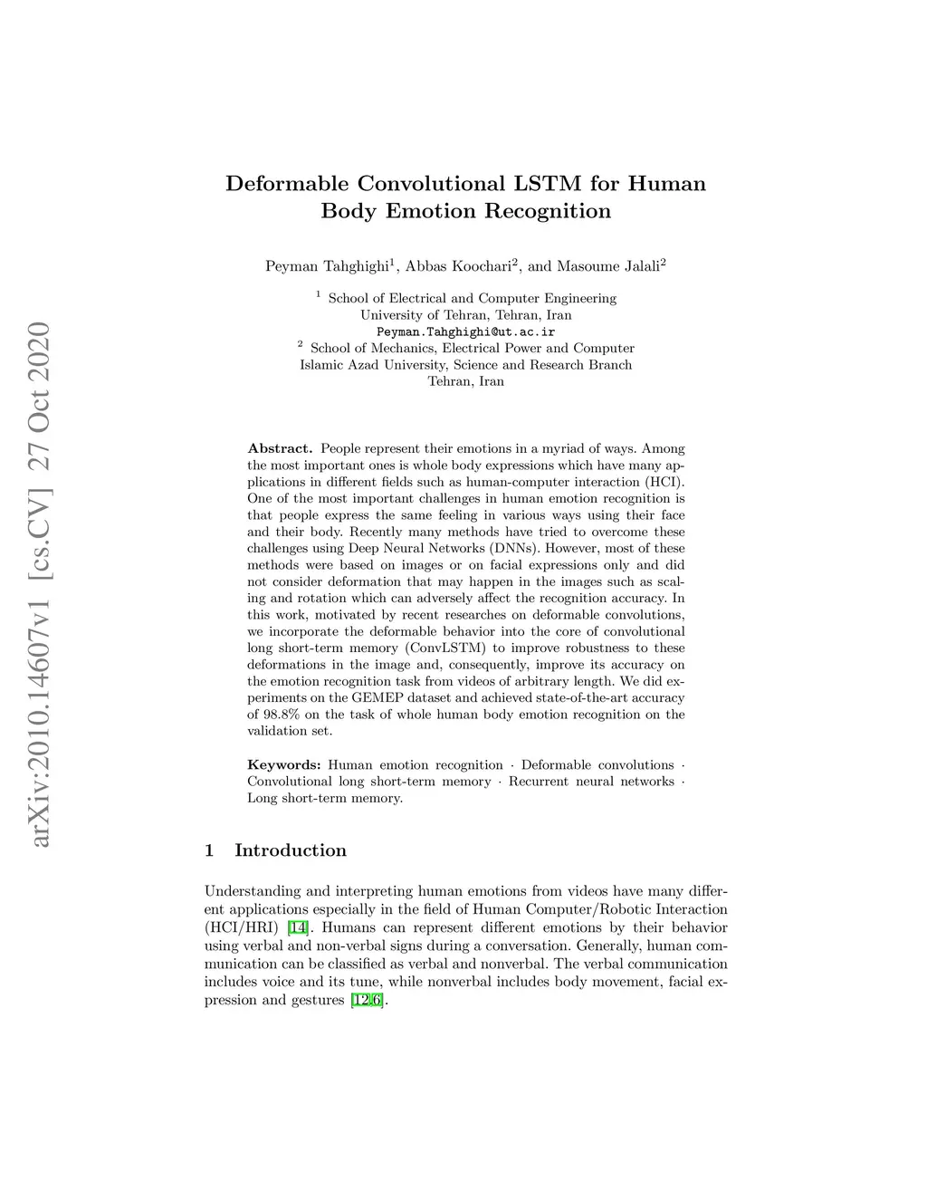 Deformable Convolutional LSTM for Human Body Emotion Recognition